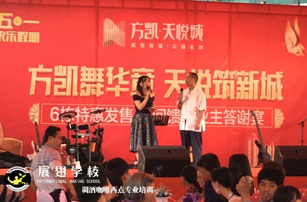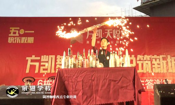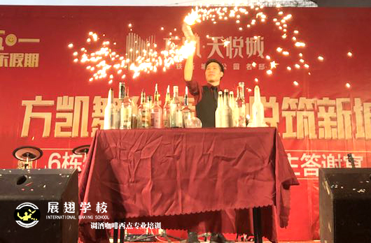 2019年5月1號,方凱舞華章 天悅筑新城業主答謝宴,展翅調酒咖啡西點培訓學校花式調酒助教朱歡洪被邀請花式調酒表演