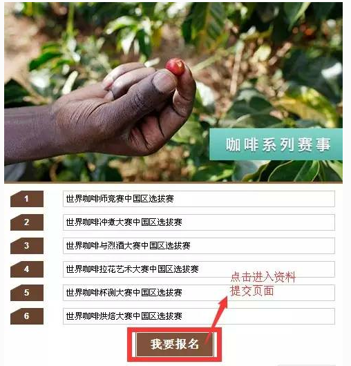 ![]() 廢話不多說(shuō),World Coffee Events(WCE)六大世界級(jí)賽事明年全面登陸中國(guó),中國(guó)區(qū)賽事引進(jìn)方上海博華國(guó)際展覽公司開(kāi)通了報(bào)名通道,各位咖啡師或個(gè)人愛(ài)好者,請(qǐng)抓緊報(bào)名咯! ![]() ![]() 報(bào)名通道網(wǎng)址(文章底部“閱讀原文”可點(diǎn)擊進(jìn)入): http://chaoyin.yunguits.com/coffee.php 進(jìn)入頁(yè)面有各賽事簡(jiǎn)介 點(diǎn)擊"我要報(bào)名" ![]() |